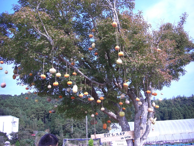 娘はカボチャにはあんまり無関心・・・。夫と私の方が食いついちゃいました^^メッチャ大きいんですもん!一杯いろんな種類がぶら下がっているし~カボチャフェスタをみたい方は土楽の里へGOです^^ ![]()
