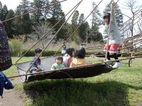 アスレチックの方にある、ロープの塔です。トランポリン?みたいなマットが貼ってあるところがあって、小さな子でも遊べます。